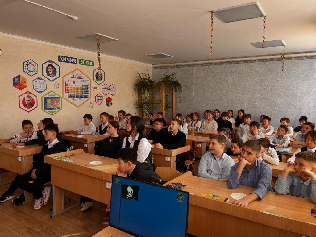 «Заң және тәртіп» айлығы аясында 5–11 сынып оқушылары үшін кәмелетке толмағандар ісі жөніндегі инспектор (ИДН) және учаскелік полиция инспекторының қатысуымен профилактикалық әңгіме өткізілді.